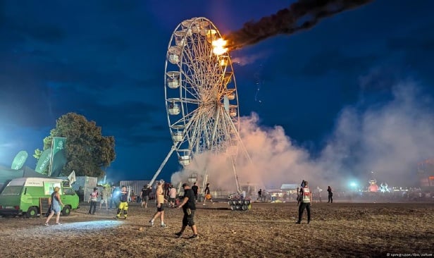 Agensi Berita Jerman telah melaporkan bahawa lebih 30 orang mengalami kecederaan selepas roda Ferris di Festival Highfield berhampiran bandar Leipzig di timur Jerman terbakar pada Sabtu lalu.